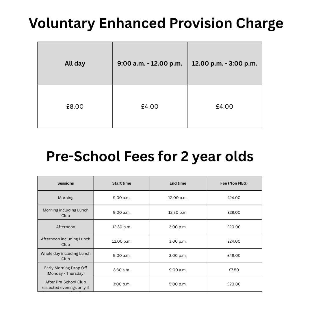 If you have any questions concerning this charge, please speak to the Pre-School Manager. As per the Government guidance that came into place on 1 April 2025, this fee is voluntary. If you do wish to or are unable to pay it, please speak to the Pre-School Manager.